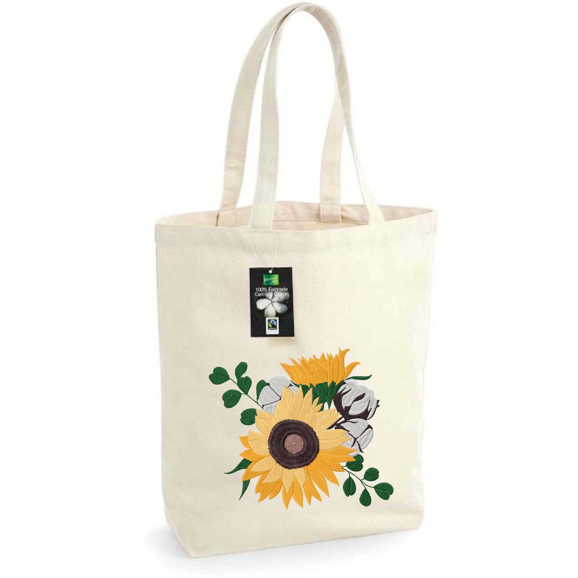 Bolsa de tela con bordado de ramo de girasoles