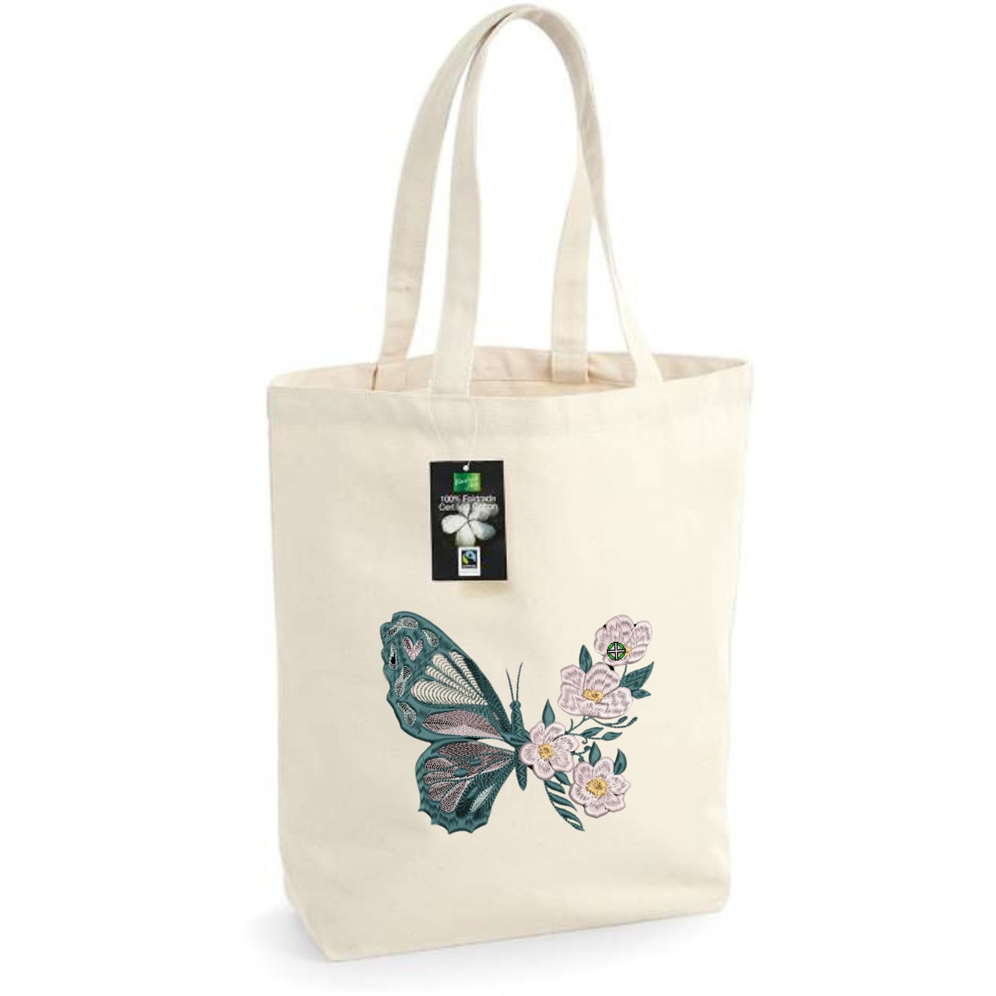 Lleva contigo un toque de naturaleza con esta elegante y cómoda bolsa de algodón, bordada con delicados motivos florales.