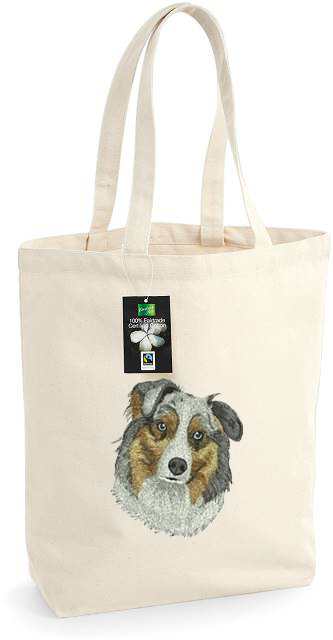 Lleva a tu amigo de cuatro patas contigo a todas partes con esta encantadora bolsa de tela, adornada con un delicado bordado de un perro Australian Shepherd.