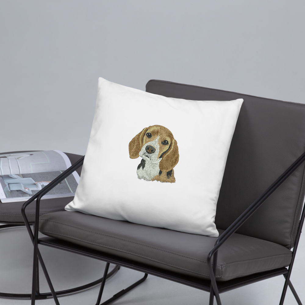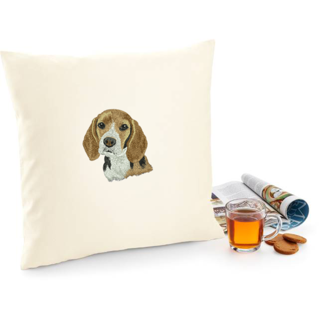 Añade calidez a tu hogar con esta funda de cojín decorativa, bellamente bordada con la imagen de un Beagle lleno de amor.