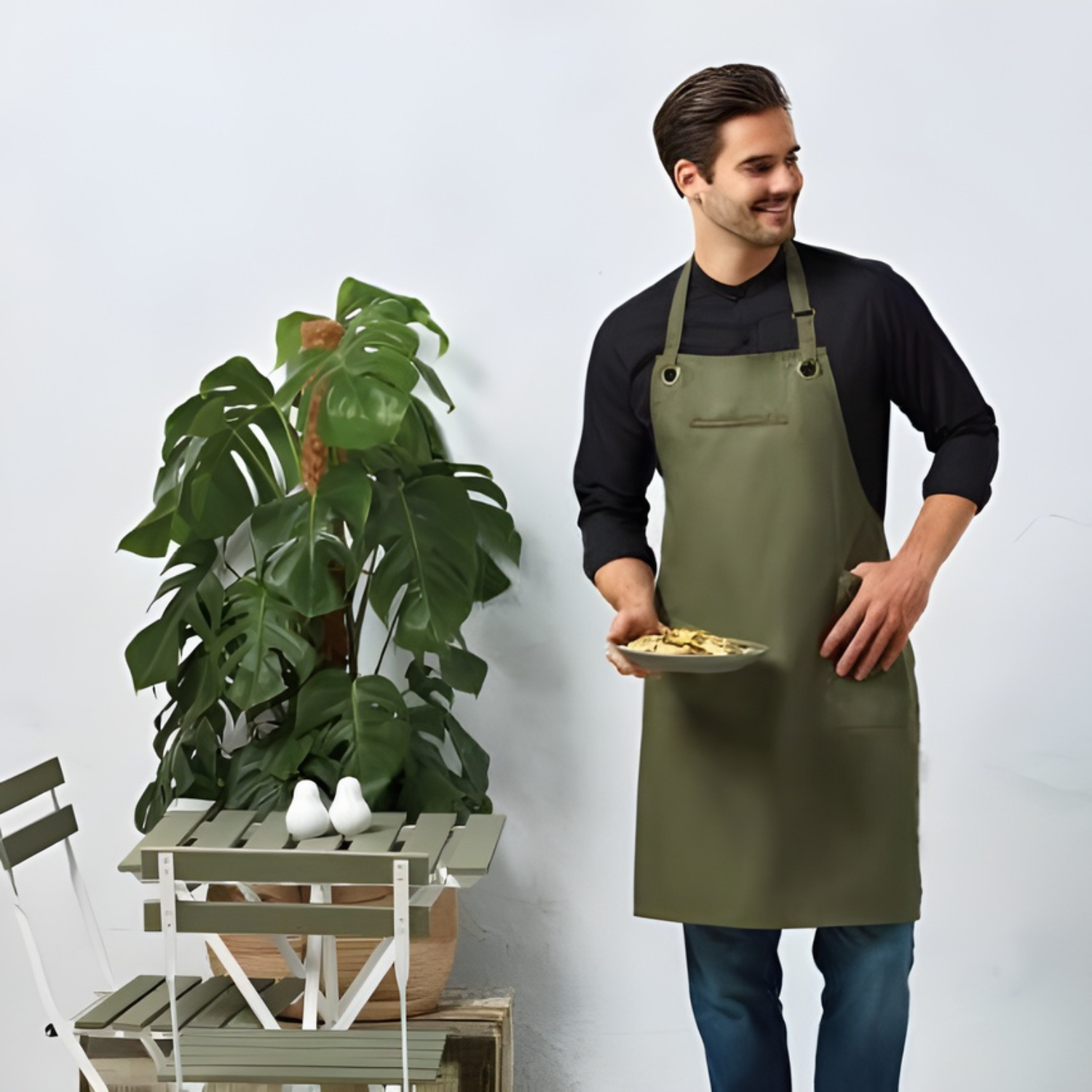 Delantal con peto y bolsillos laterales “Barley”