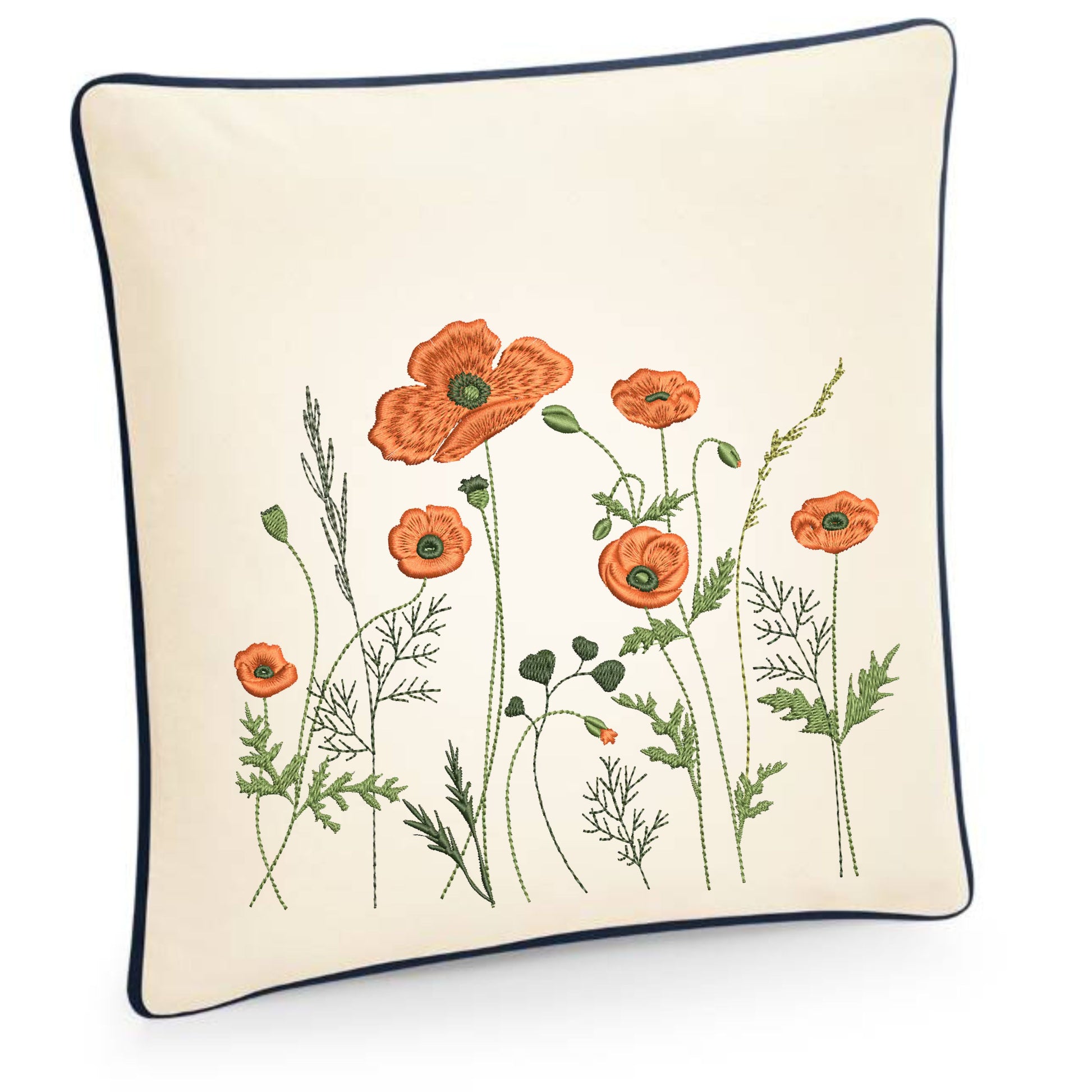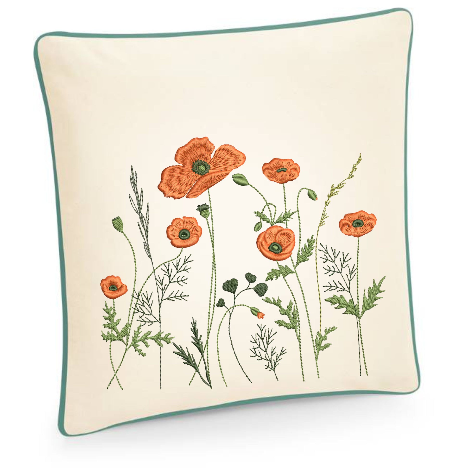 Añade un toque delicado y lleno de vida a tu hogar con esta funda de cojín decorativa, bordada con una amapola silvestre.