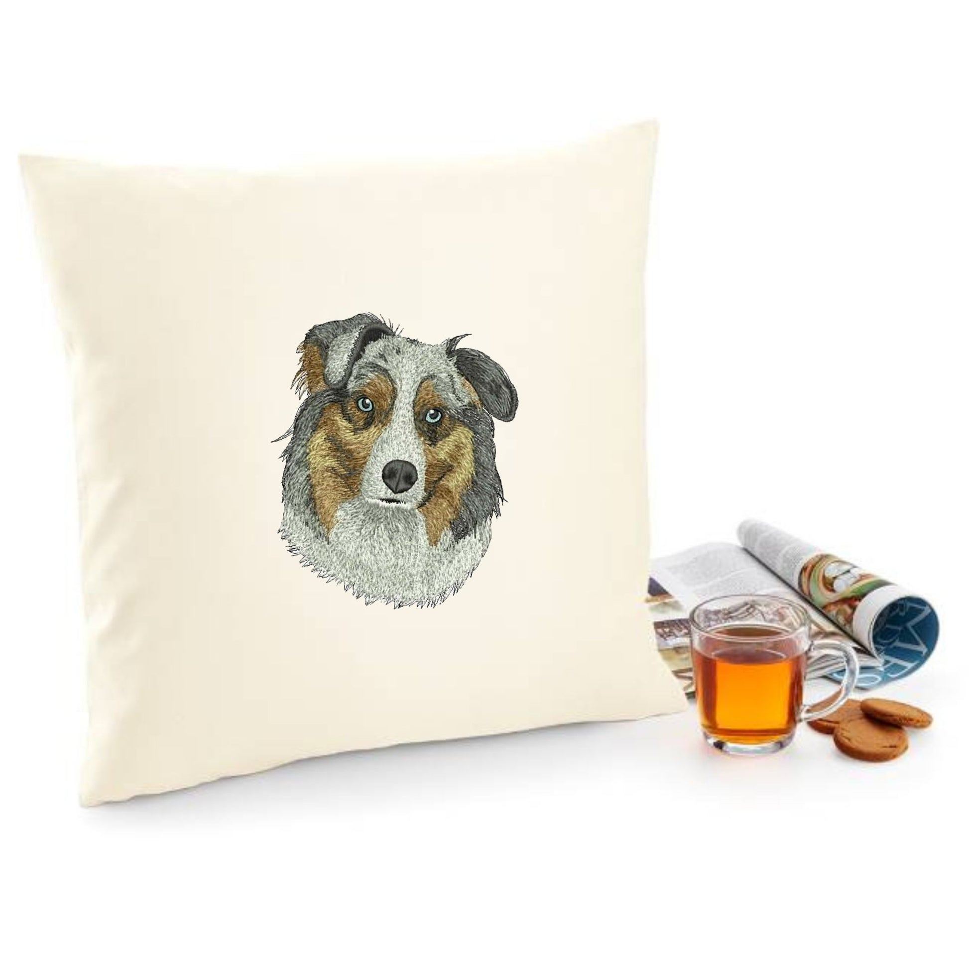 Añade calidez a tu hogar con esta funda de cojín decorativa, bellamente bordada con la imagen de un Australian shepherd dog.