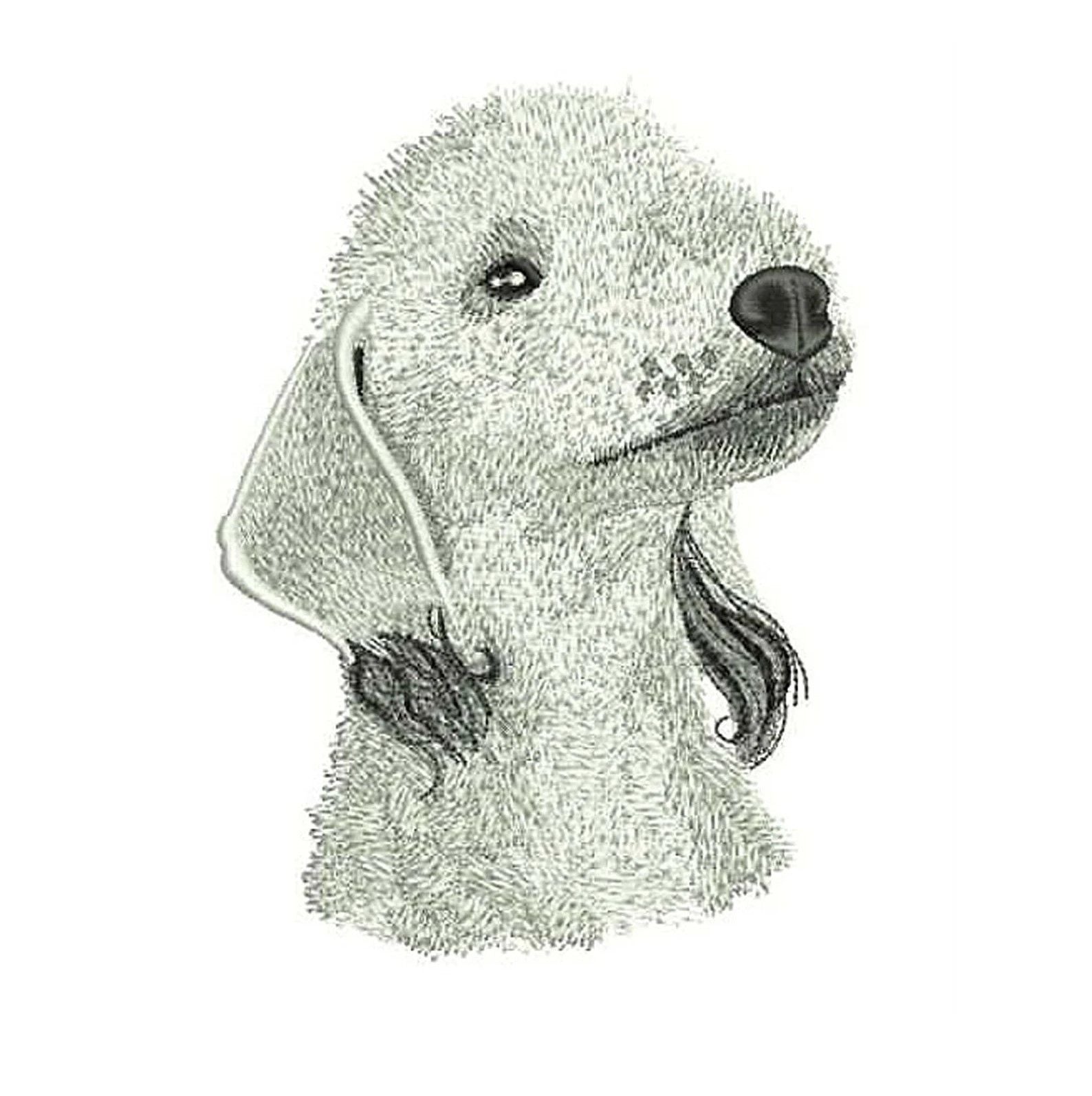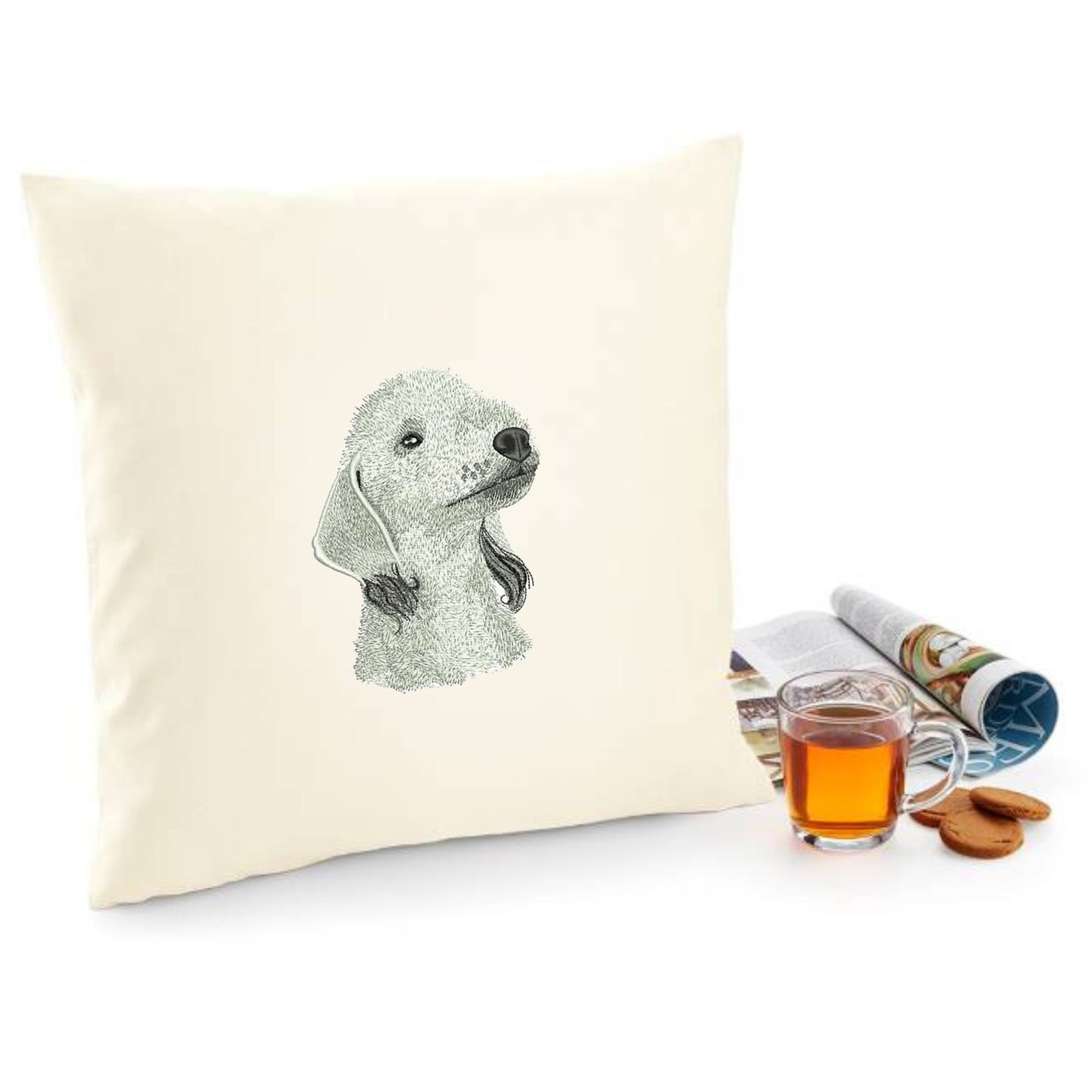 Añade calidez a tu hogar con esta funda de cojín decorativa, bellamente bordada con la imagen de un Bedlindton terrier.