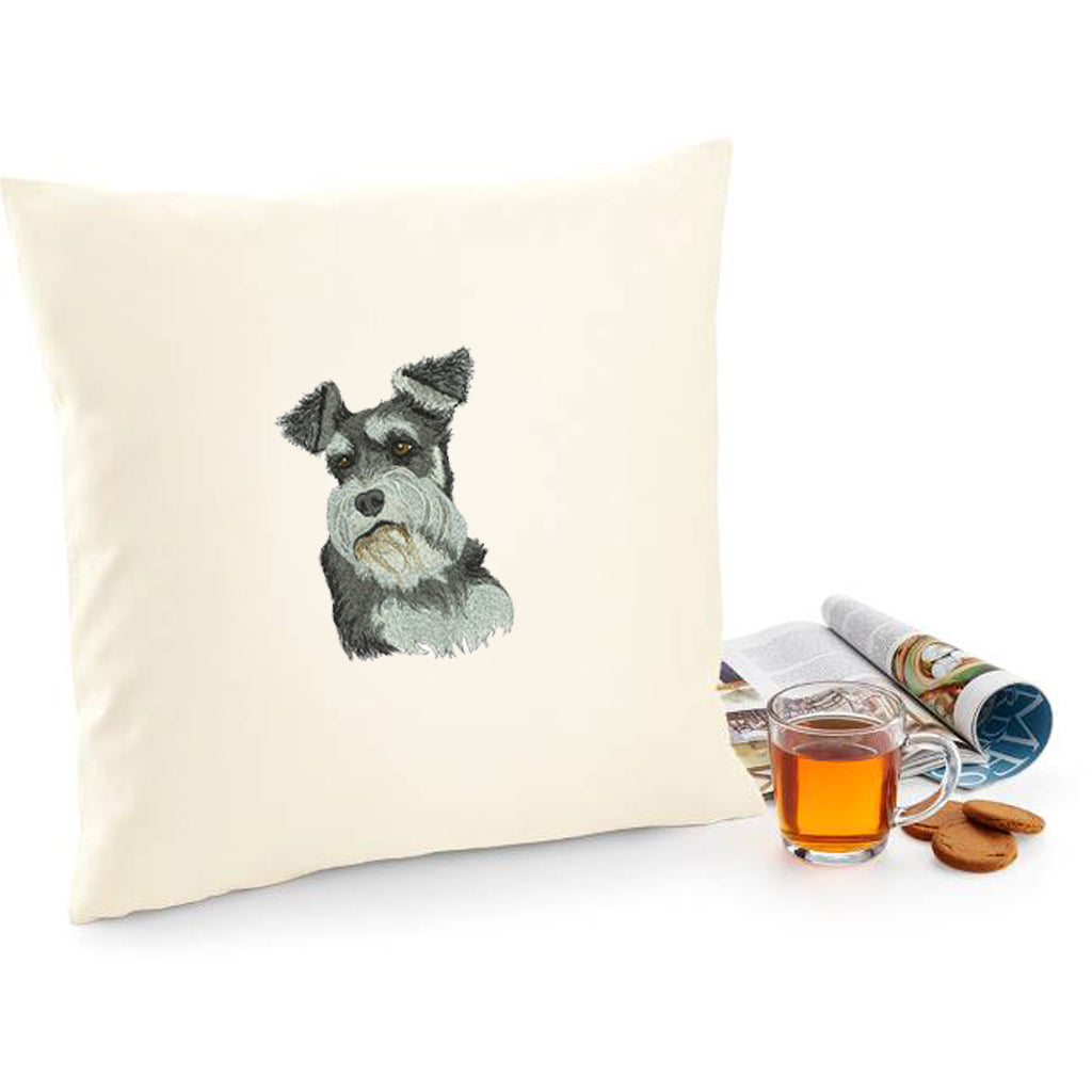 Añade calidez a tu hogar con esta funda de cojín decorativa, bellamente bordada con la imagen de un Standart schnauzer lleno de amor.