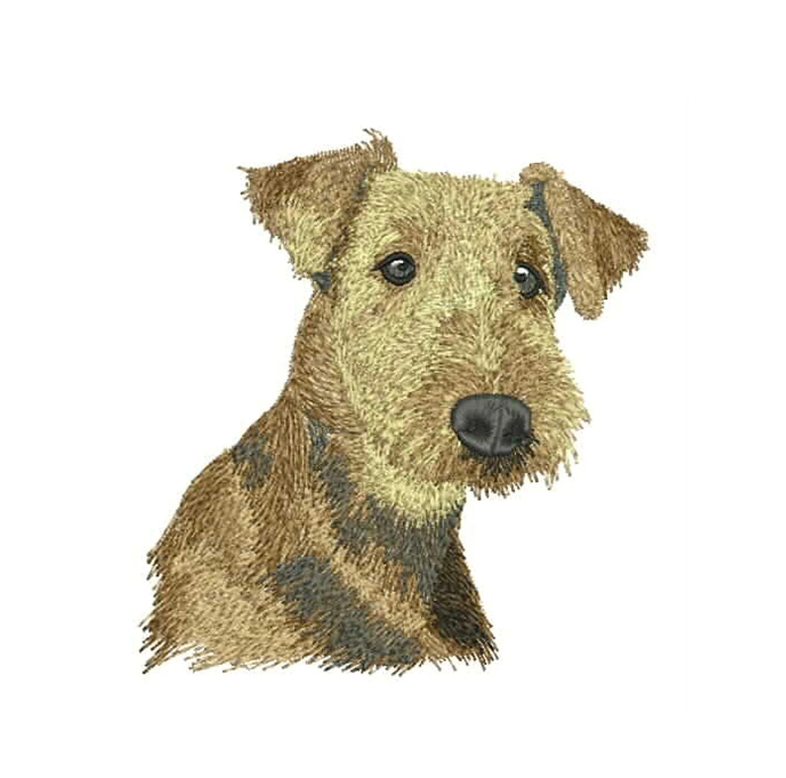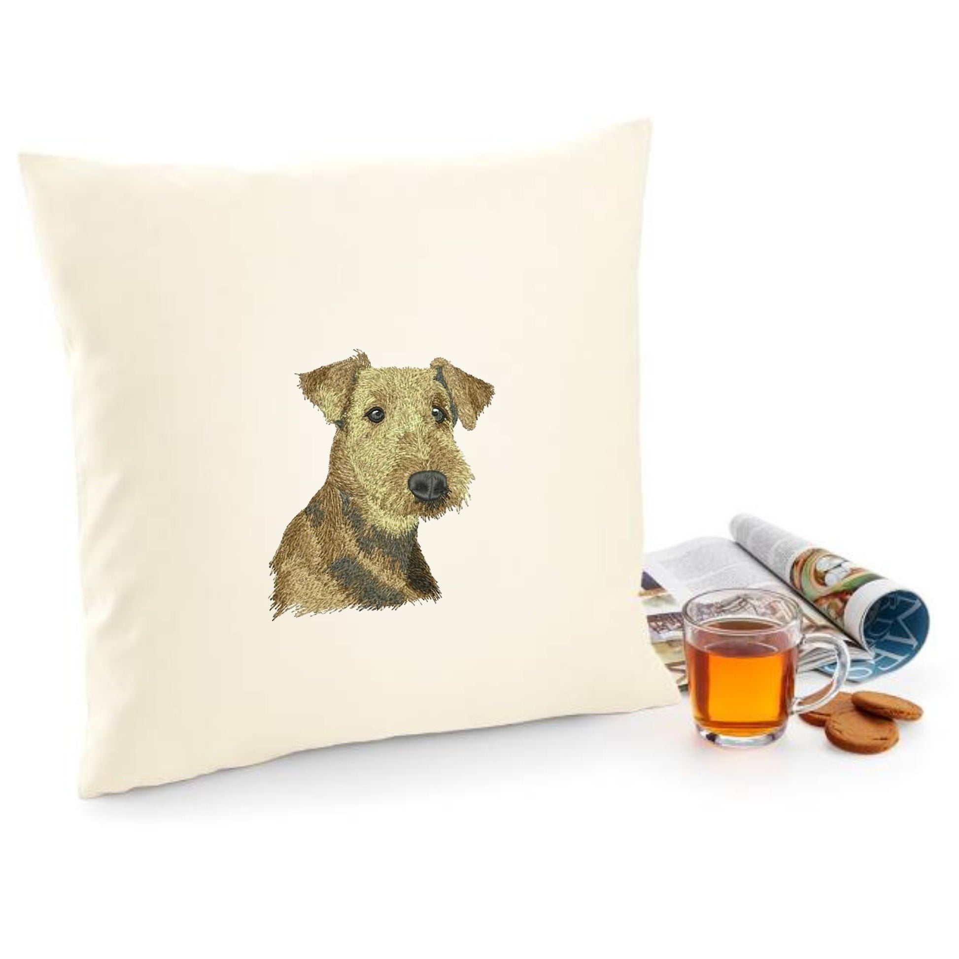 Añade calidez a tu hogar con esta funda de cojín decorativa, bellamente bordada con la imagen de un Airedale terrier.