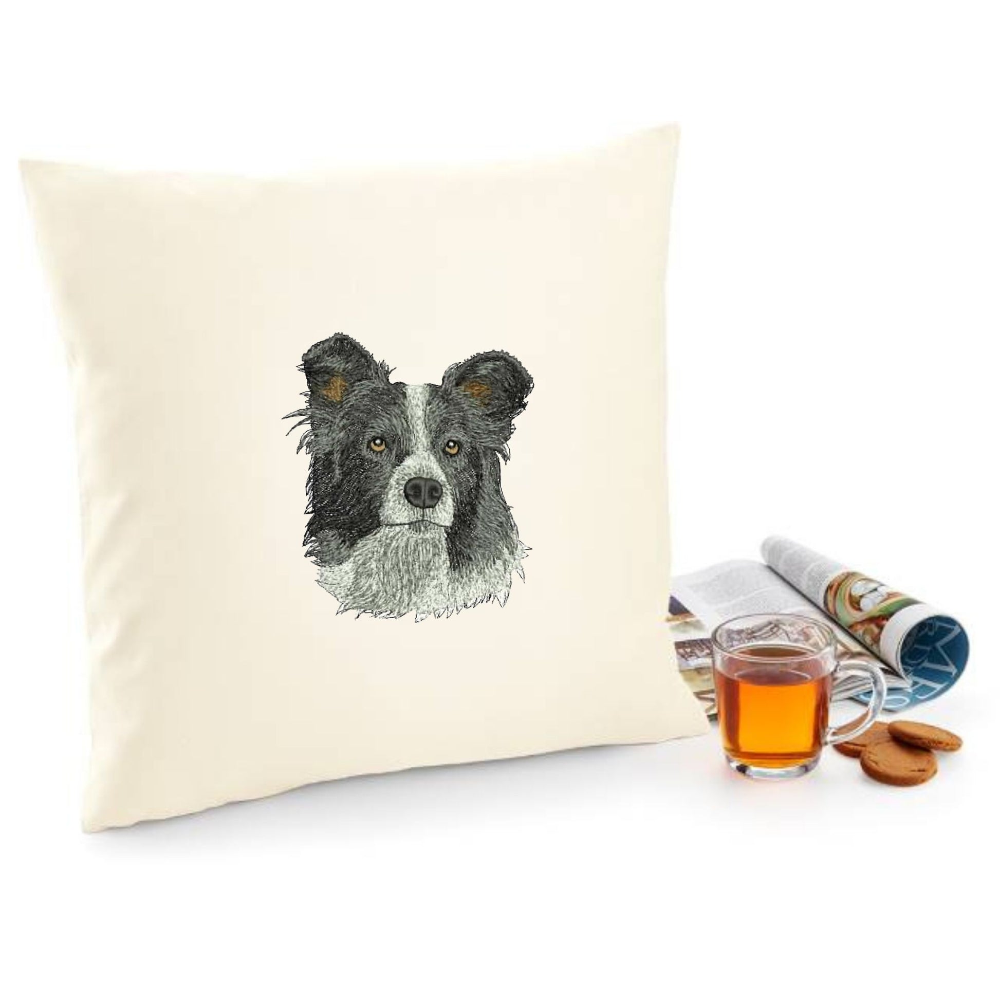 Añade calidez a tu hogar con esta funda de cojín decorativa, bellamente bordada con la imagen de un Border collie.