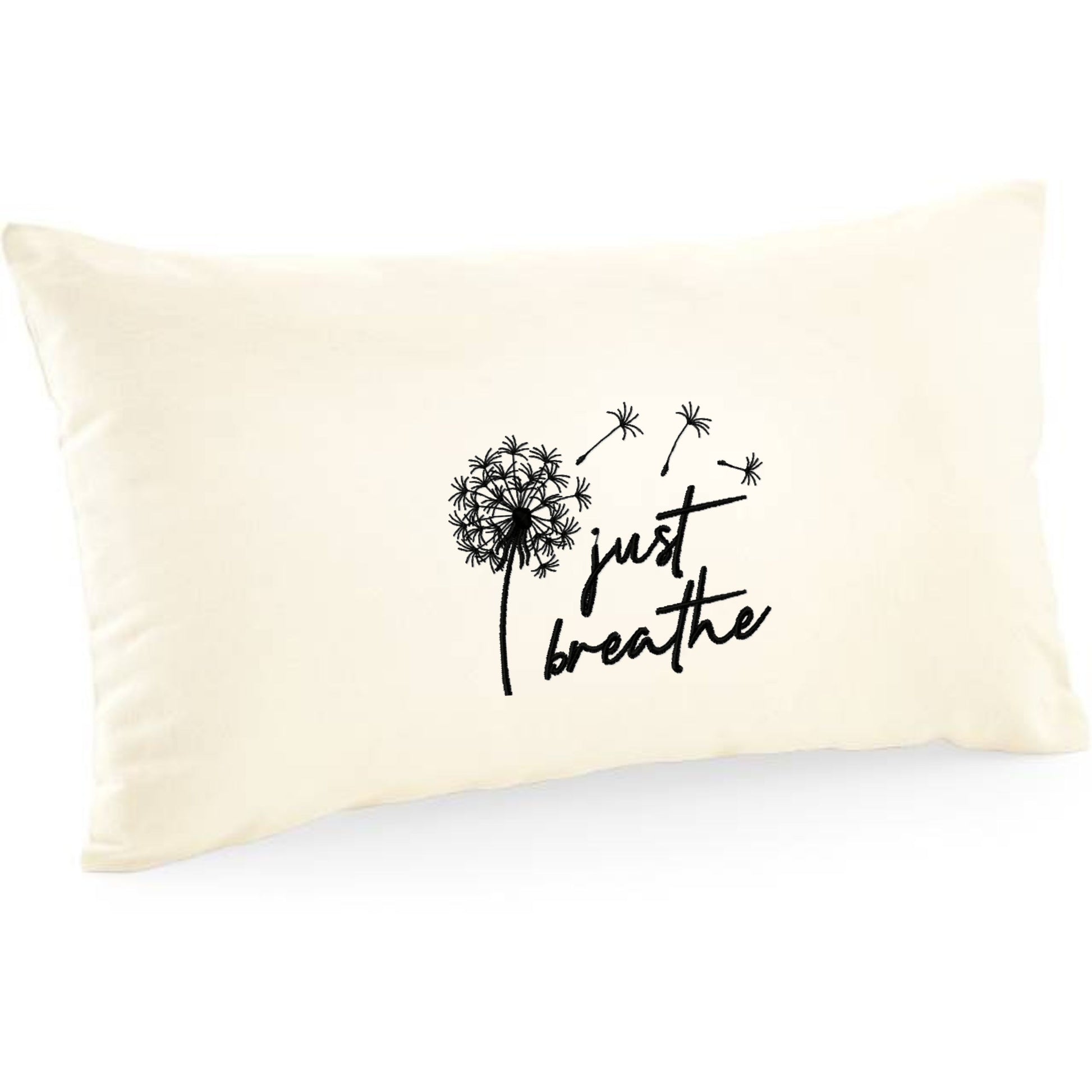 Funda de cojín decorativa con bordado de diente de león – solo respira