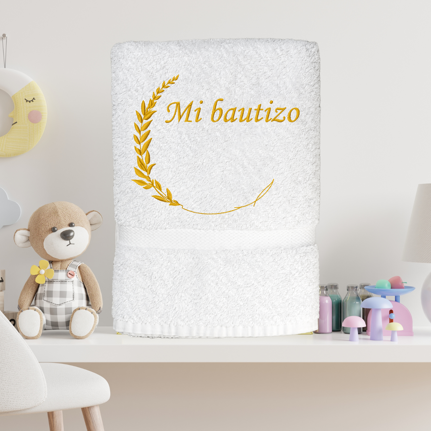 Toalla de Bautizo con Diseño de Ramillete – Un Detalle Natural para un Día Inolvidable