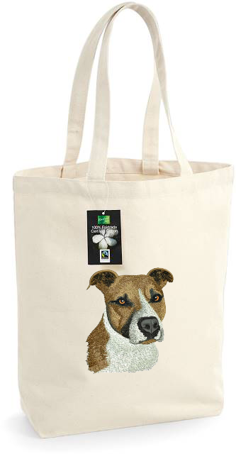 Lleva a tu fiel compañero de cuatro patas contigo a todas partes con esta encantadora bolsa textil, adornada con un delicado bordado de American Pit Bull Terrier. Diseñada para el uso diario, esta bolsa no solo es práctica y conveniente, sino también llena de calidez.